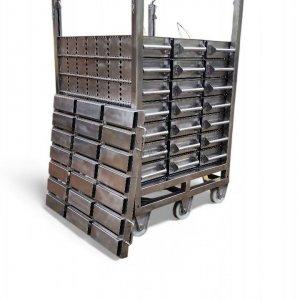 Пресс-рама для копчения или варки используется на предприятиях пищевой промышленности. Пресс-рама для копчения или варки представляет из себя набор пресс-форм с ячейками и пресс-крышку. Количество полок - по требованию заказчика.